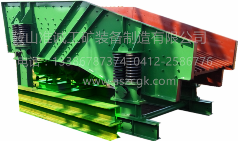 此款棒條式給料機(jī)通過(guò)角帶驅(qū)動(dòng)箱式激振器,使給料機(jī)產(chǎn)生直線(xiàn)運(yùn)動(dòng)軌跡。機(jī)體結(jié)構(gòu)為框架式,環(huán)槽鉚釘聯(lián)接,襯板、棒條采用錳鋼制造,結(jié)構(gòu)強(qiáng)度高,耐磨損,耐撞擊。特別適合于做建筑石料、金屬礦石大破碎的給料用。